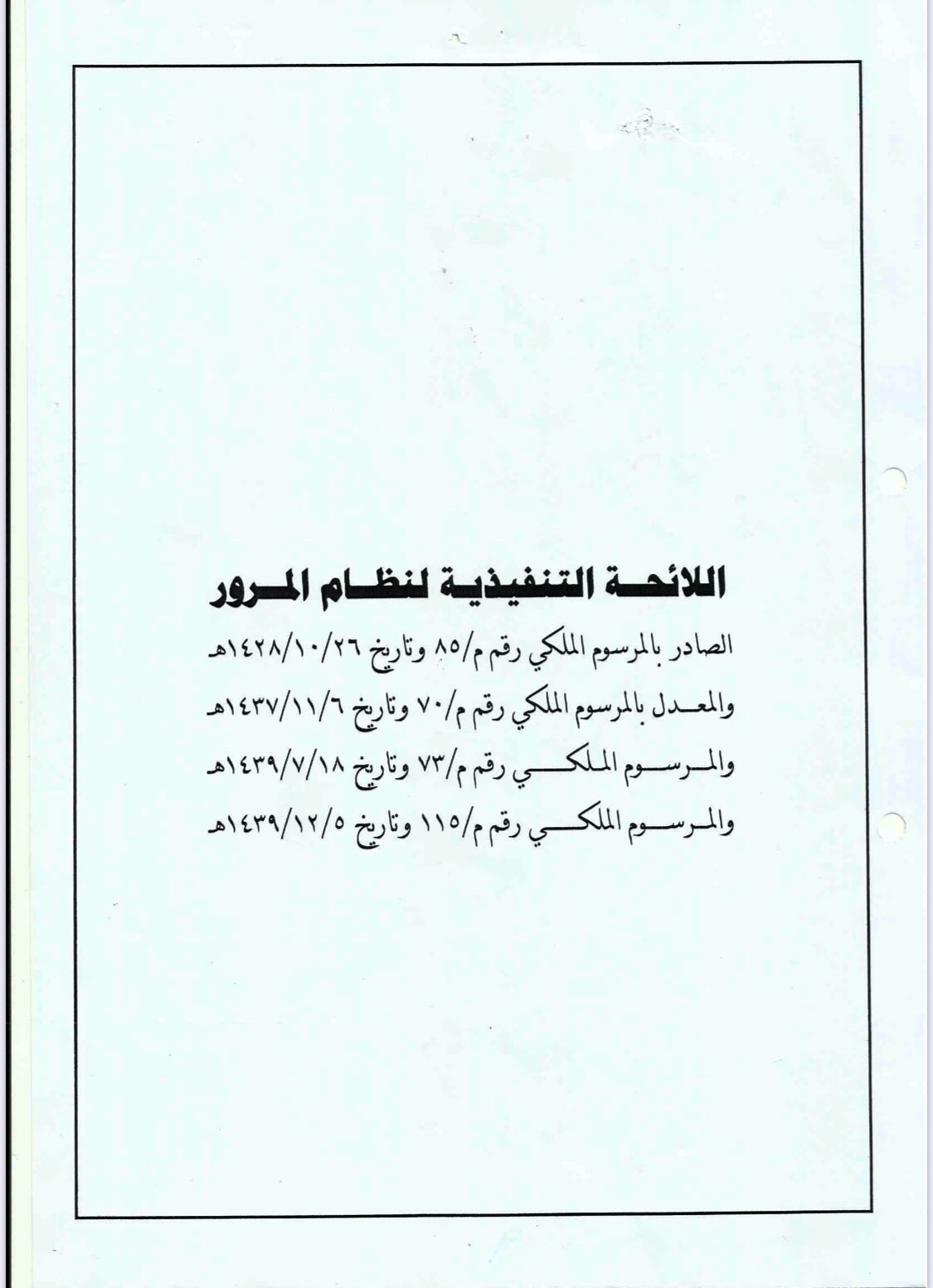 اللائحة التنفيذية لنظام المرور. ونشرت الجريدة الرسمية أم القرى في عددها رقم 4812 نص القرار الذي جاء كالتالي. نظام المرور واللائحة. ثغب٧ لا جكعؼ 34 ٥أ ٥٠ خؽث ل٣ؤ ث٤ ثع أ ذحسر د سث ةثس٥ ث٤٠ ؿؽن ث ح ؿر. وقوعه على أن تشعر النيابة العامة به وترفع إليها ملف القضية وفقا لنظام.