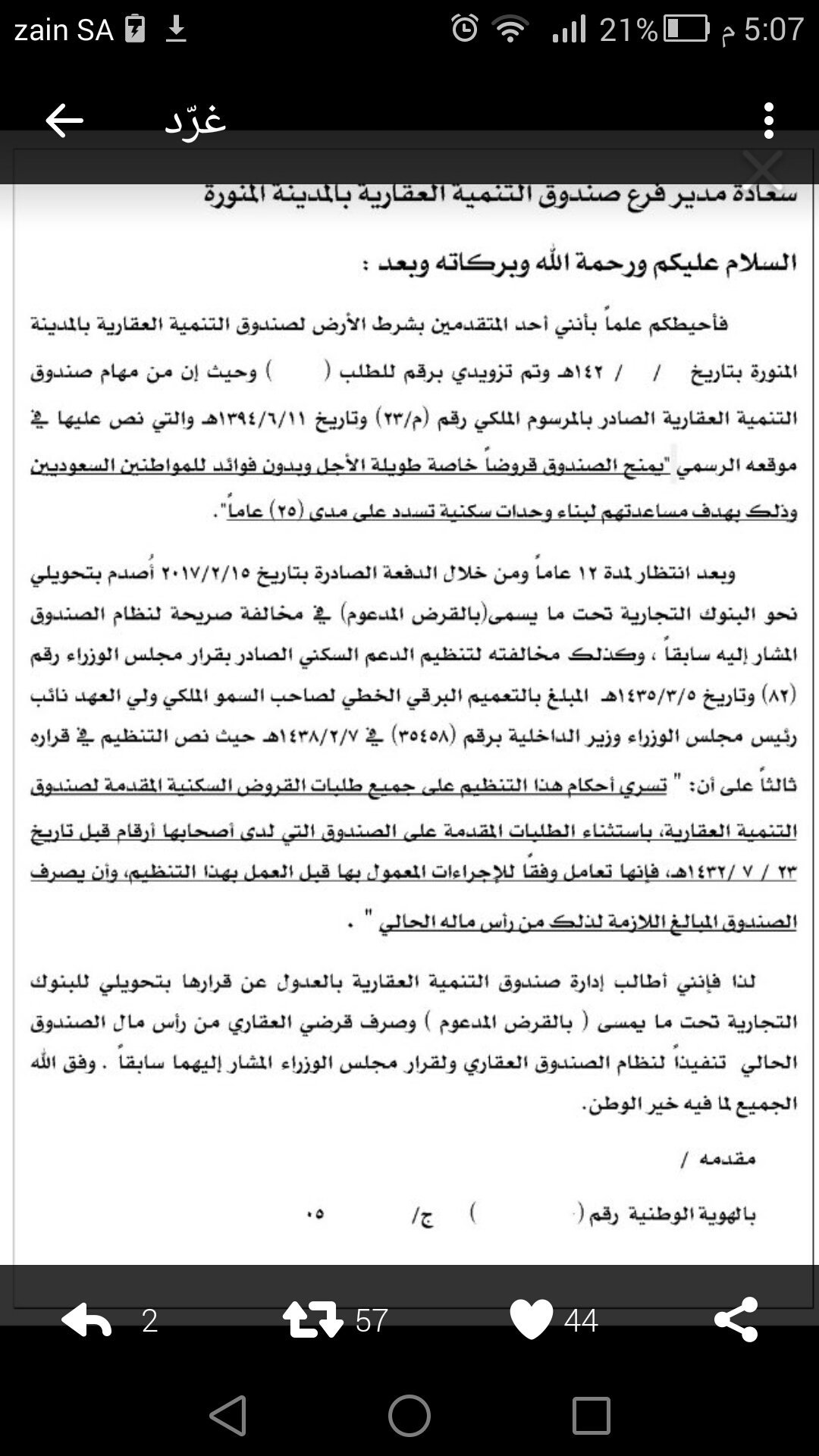 وكان ناشطون على موقع تويتر أنشأوا في أبريل نيسان حسابا بعنوان متضرري الصندوق العقاري للمطالبة بـ إنصافهم عبر خطوات رفع دعاوي بديوان المظالم وعرض طريقة رفع شكوى ضد الصندوق العقاري في. متضرر الصندوق العقاري قال. اولا يرسل خطاب اعتراض الى صندوق التنمية العقاري عبر البريد الممتاز ويستلم الوصل وصيغة الخطاب موجودة في القناة. الخميس 26 جمادي الأول 1438 هـ 23 فبراير 2017 ksa 23 00 gmt 20 00.