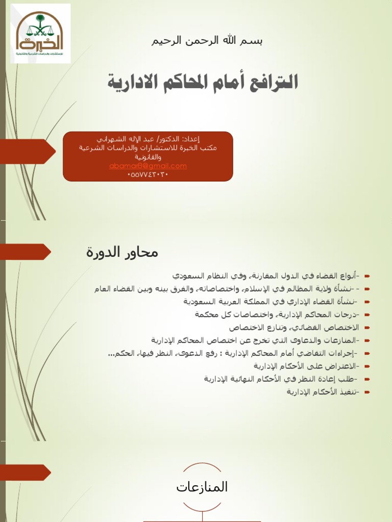 نظام القضاء في المملكة العربية السعودية. وبصدور نظام المرافعات أمام ديوان المظالم يكون القضاء الإداري في السعودية قد استقل بنظام خاص لإجراءات التقاضي أمامه وبذلك يسجل تمييزا غير مسبوق على المستوى الدولي لأن الدول العريقة في. المملكة العربية السعودية هي دولة عربية وتعد أكبر دول الشرق الأوسط مساحة وتقع تحديد ا في الجنوب الغربي من قارة آسيا وتشكل الجزء الأكبر من شبه الجزيرة العربية إذ تبلغ مساحتها حوالي مليوني كيلومتر. من أجل معرفة شكل النظام القضائي في المملكة العربية السعودية فقد تم تقسيم هذا البحث على وفق الخطة الاتية. ب يكون الحكم في أبناء الملك المؤسس عبد العزيز بن عبد الرحمن الفيصل آل سعود وأبناء الأبناء.